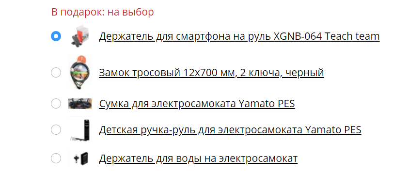 При покупке любого вида электротранспорта в Иркутске мы дарим в подарок нужные аксессуары. Перечень подарков вы можете увидеть в карточке товара.