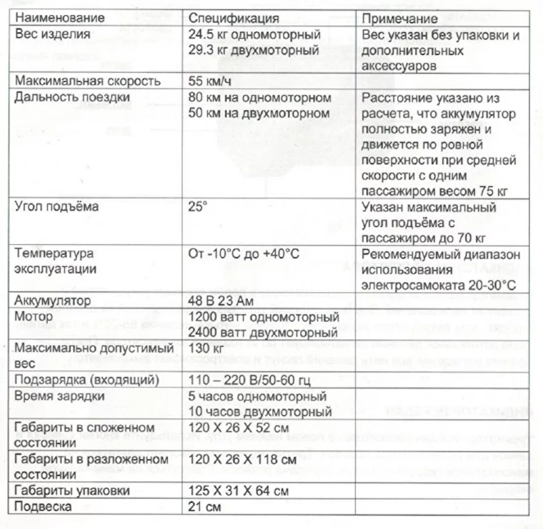 Технические характеристики Kugoo G-Booster 23Ah:
