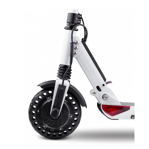 Первое, на что стоит обратить внимание, это литые резиновые колеса самоката. В модели Kugoo S3 PRO они получили перфорацию, что позволило увеличить амортизационные качества улучшить сцепление с поверхностью. Амортизаторы также не остались без улучшений – новая подвеска обеспечит вас должным комфортом и удобством во время поездки.