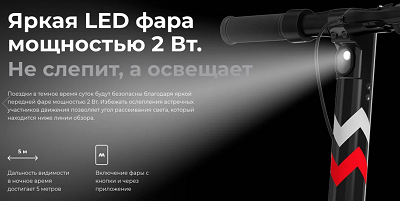 5. Функция стоп сигнала. Одновременно с включением переднего света включается и задняя фара. Во время нажатия на тормоз загорается стоп сигнал.