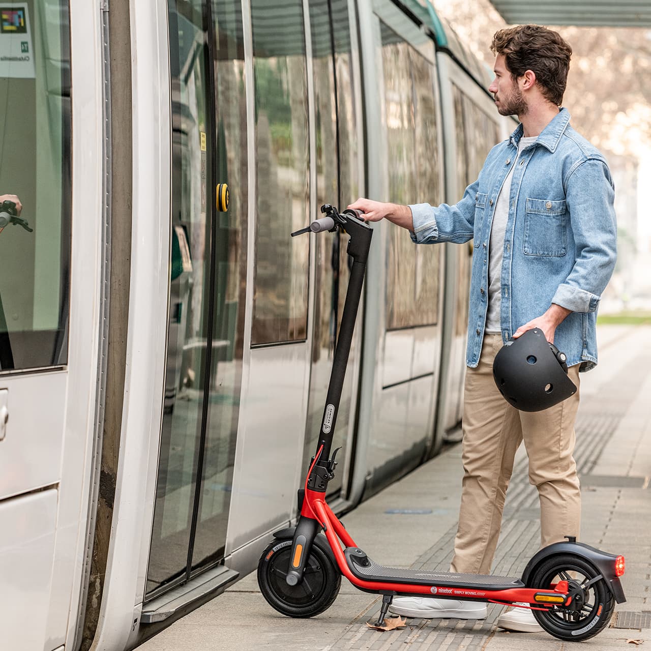 В основе каркаса Ninebot KickScooter D38 – надёжная и лёгкая рама из прочного сплава, выдерживающая нагрузку до 120 килограммов. Благодаря складной конструкции вы всегда можете взять электросамокат с собой в вагон метро или разместить в багажнике автомобиля.