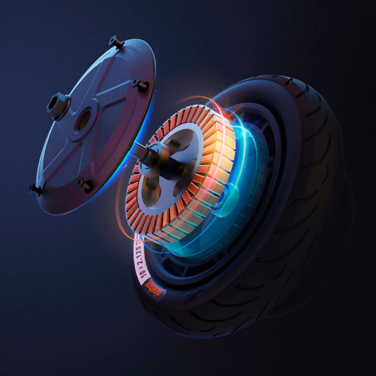 Ninebot KickScooter D38, как и его собратья из D-серии, комплектуется 10-дюймовыми пневматическими шинами с камерами внутри, обеспечивающими комфортное передвижение. Армированные покрышки устойчивы к износу, а запатентованная форма протектора обеспечивает надёжное сцепление с поверхностью.