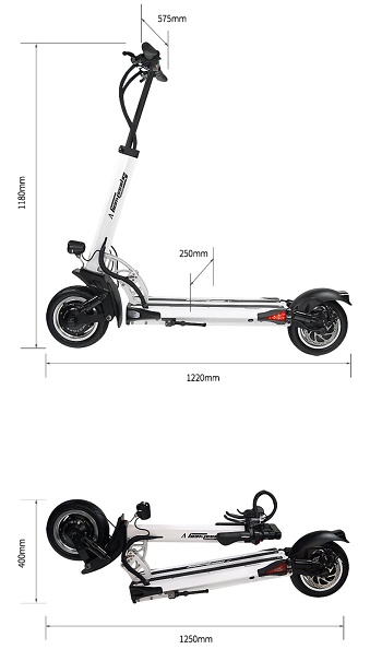 • Несмотря на внушительные технические характеристики Speedway 5 имеет небольшие размеры. Чтобы было удобно хранить и перевозить изделие, его можно сложить. Рулевая стойка притягивается к деке и фиксируется в таком положении.